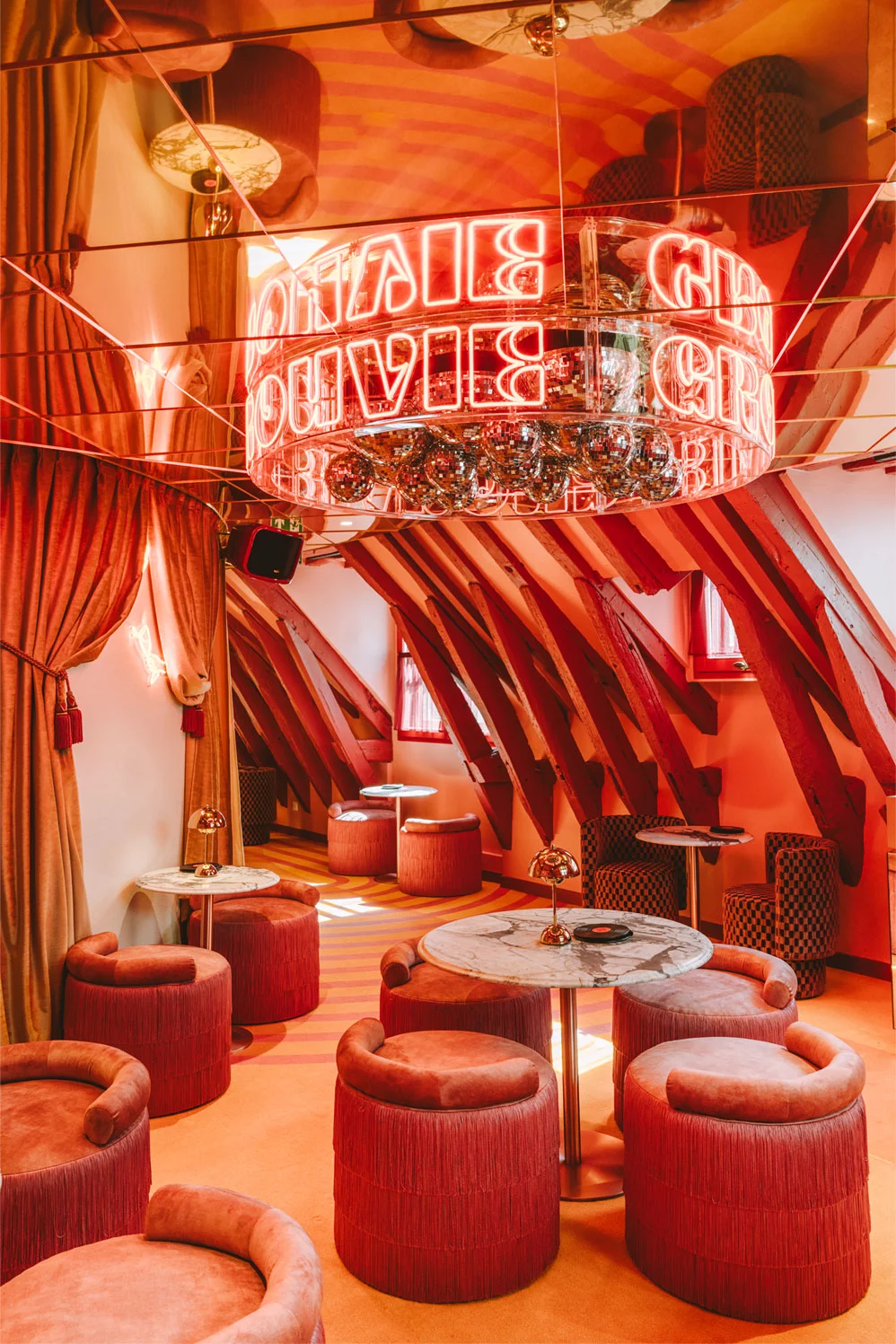 Tucked away on the third floor of the Brasserie des Prés, Grouvie is a hidden speakeasy-style cocktail bar nestled in the charming Cour du Commerce Saint-André, in Paris’s 6th arrondissement, just steps from Métro Odéon. The cocktail menu is crafted by Jennifer Le Nechet, world mixology champion, who draws inspiration from the brasserie’s cuisine and pastry to create bold, unexpected drinks. Every evening, guests are invited to sip and snack in a resolutely groovy setting of warm tones and an intimate boudoir atmosphere, all to the beat of a wild disco playlist.
